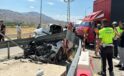 Kamyonla çarpışan otomobil bariyerlere saplandı