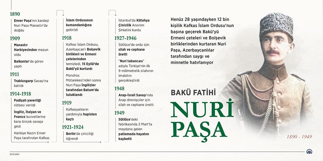 Türk Devletleri Parlamenter Asamblesi (TÜRKPA) 3 Mart Pazar günü Azerbaycan’ın başkenti Bakü’de Kafkas İslam Ordusu Komutanı, “Bakü’nün Halâskârı” Nuri Paşa’nın ebediyete irtihalinin 75’inci yıl dönümü vesilesiyle anma programı düzenliyor.