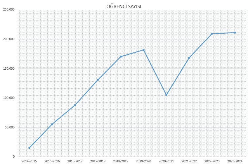 Pandemide düşüş yaşansa da bu dönemin ardından öğrenci sayısındaki artış yeniden ivme kazandı. 10 yılı aşkın sürede öğrenci sayısı 13 kattan fazla artış gösterdi.