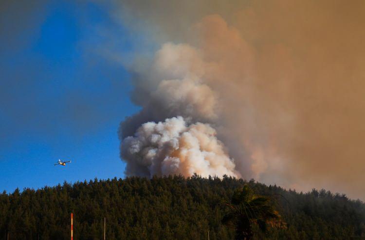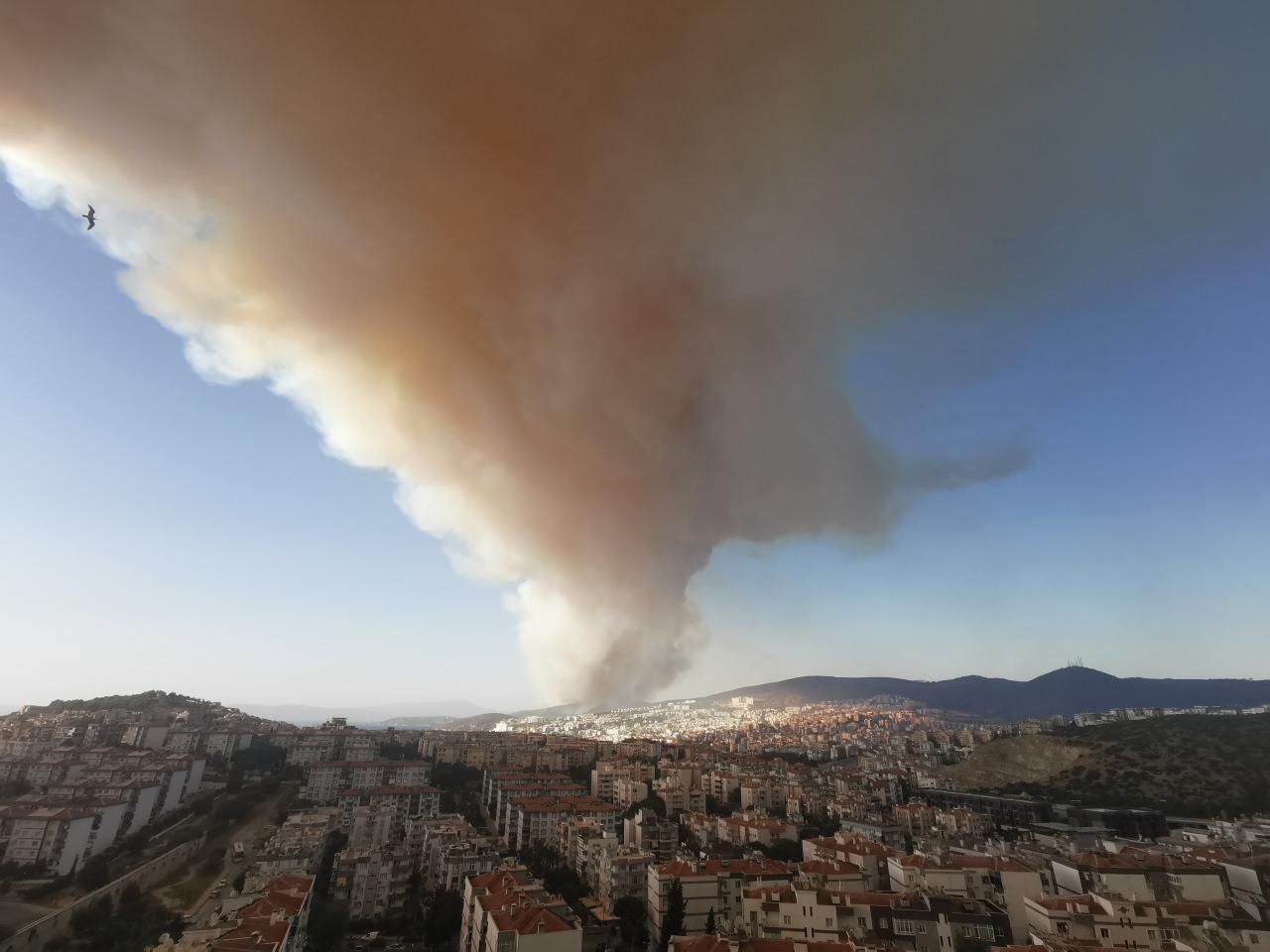 Henüz bilinmeyen bir sebeple başlayan yangına İzmir Orman Bölge Müdürlüğü ekipleri; 4 uçak, 8 helikopter, 25 arazöz, 6 su ikmal ve 4 dozer aracı ile müdahale ediyor.