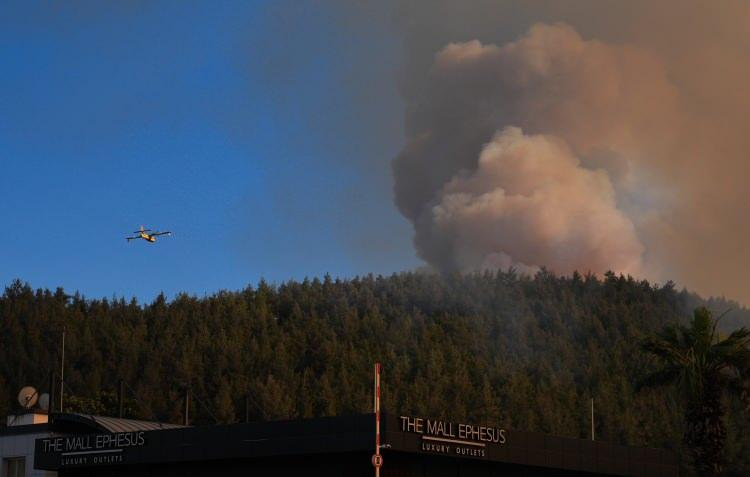 İzmir’in Menderes ve Selçuk ilçesinde ormanlık alanda çıkan yangına, havadan ve karadan müdahale ediliyor. Yangını kontrol altına alma çalışmaları sürüyor.