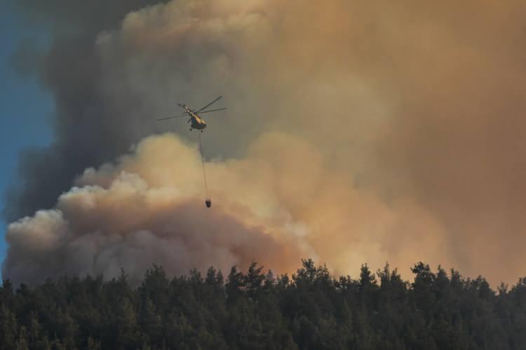 Yangına 2 helikopter, 8 arazöz ve 9 su tankeriyle müdahale ederek kontrol altına alan ekipler, soğutma çalışmasını sürdürüyor.