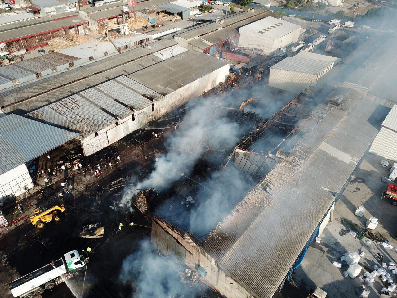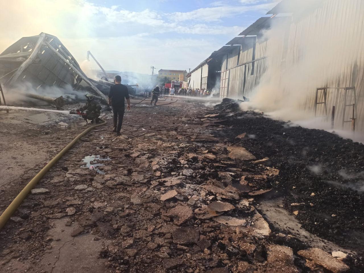 Yangın, çevredeki iş yerlerine sıçramadan yaklaşık 1 saatlik müdahaleyle söndürüldü. Bölgede soğutma çalışmaları sürüyor.