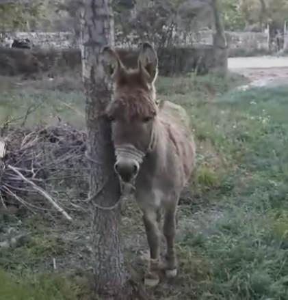 Olay sonrası eşek, çevredekiler tarafından ağaca bağlandı.
